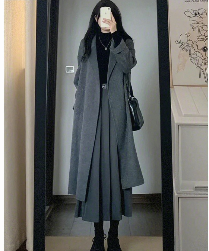◈[당일발송]심플 벨티드 브이넥 카라 코트
