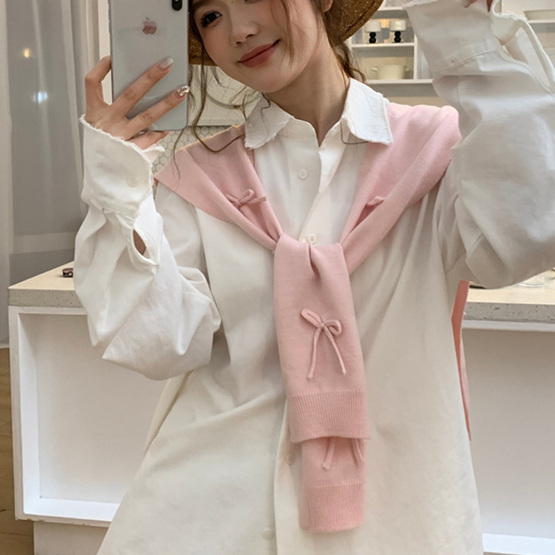 ◈[당일발송] 리본 장식 니트 숄 머플러