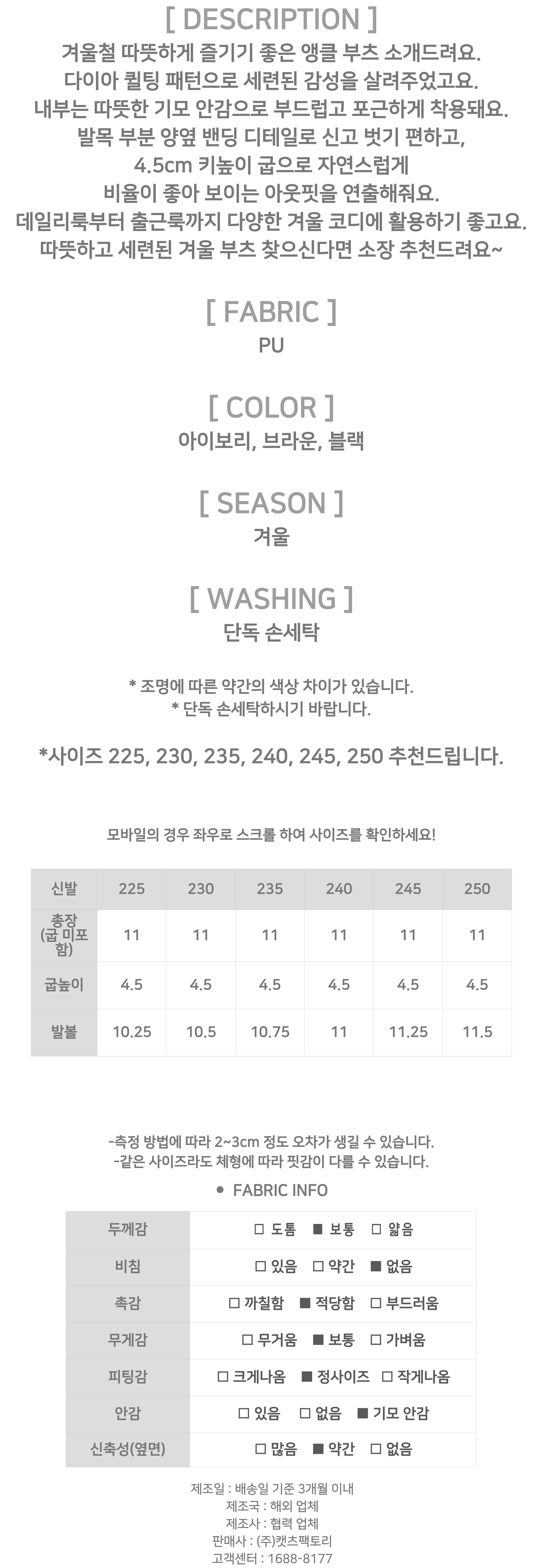 - 반품시 택배 포장을 수령한 대로 하지 않거나 부실하게 하여 택배사 운송도중 물품이 훼손, 오염되어 입고된 경우 (택배사 과실 제외) - 상품의 색상은 사용하시는 모니터 사양에 따라 실제 색상과 다소 차이가 있을 수 있으며, 이는 불량의 사유가 되지 않습니다. - 제품 사이즈는 측정 방식에 따라 2~3cm의 오차가 있을 수 있으며, 이는 불량의 사유가 되지 않습니다.