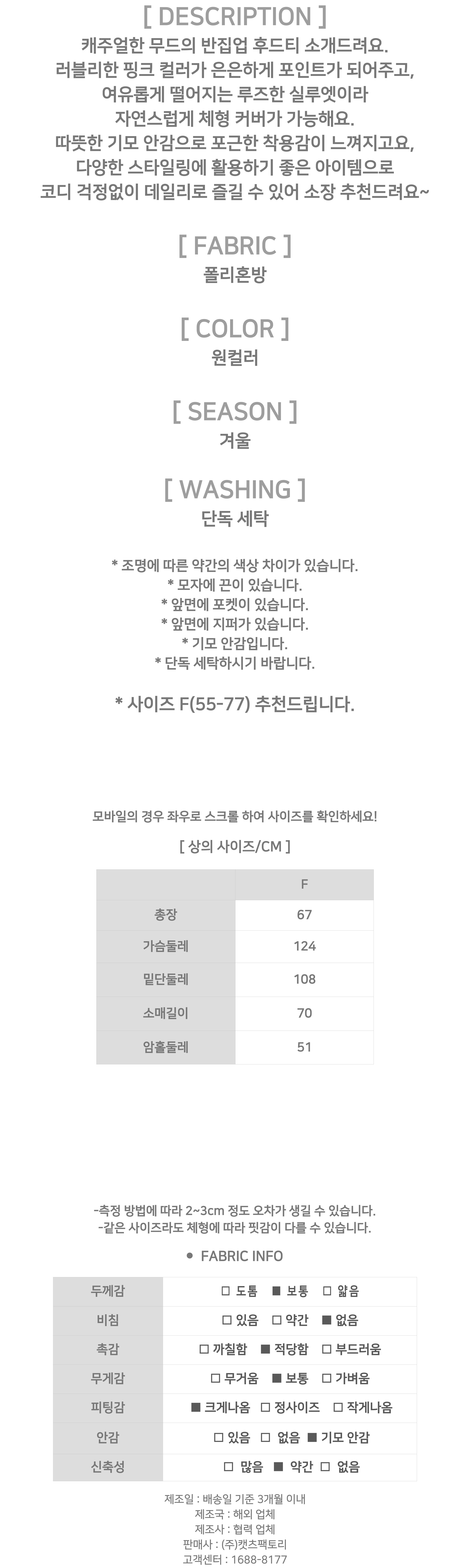 181131 러블리 핑크 반집업 기모 후드티 29980