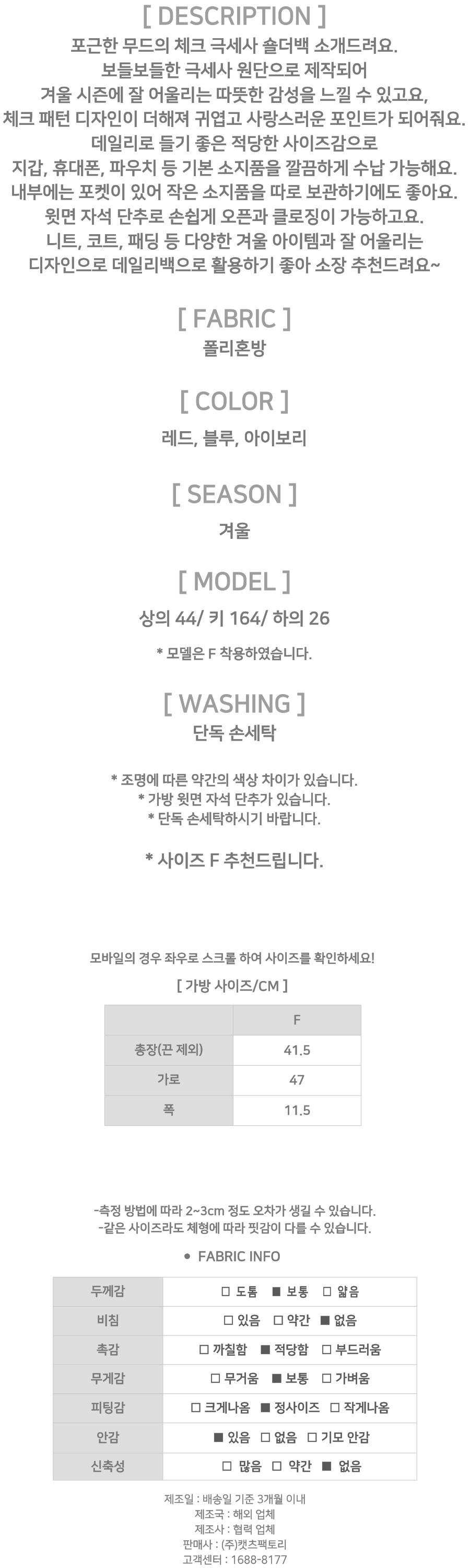 - 제품 사이즈는 측정 방식에 따라 2~3cm의 오차가 있을 수 있으며, 이는 불량의 사유가 되지 않습니다.