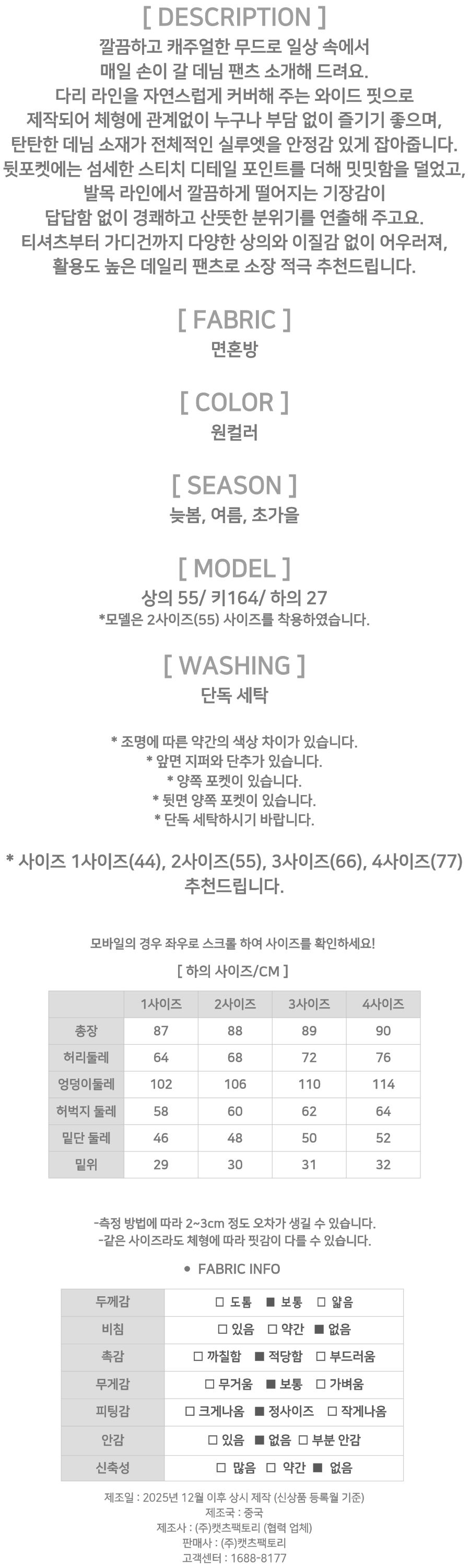 182547 뒷포켓 스티치 와이드 데님 팬츠 30580