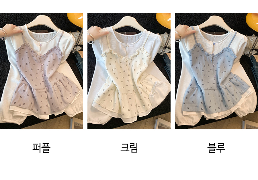 182435 잔꽃 프릴 뷔스티에 레이어 블라우스 23480
