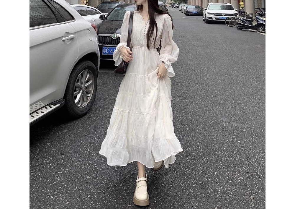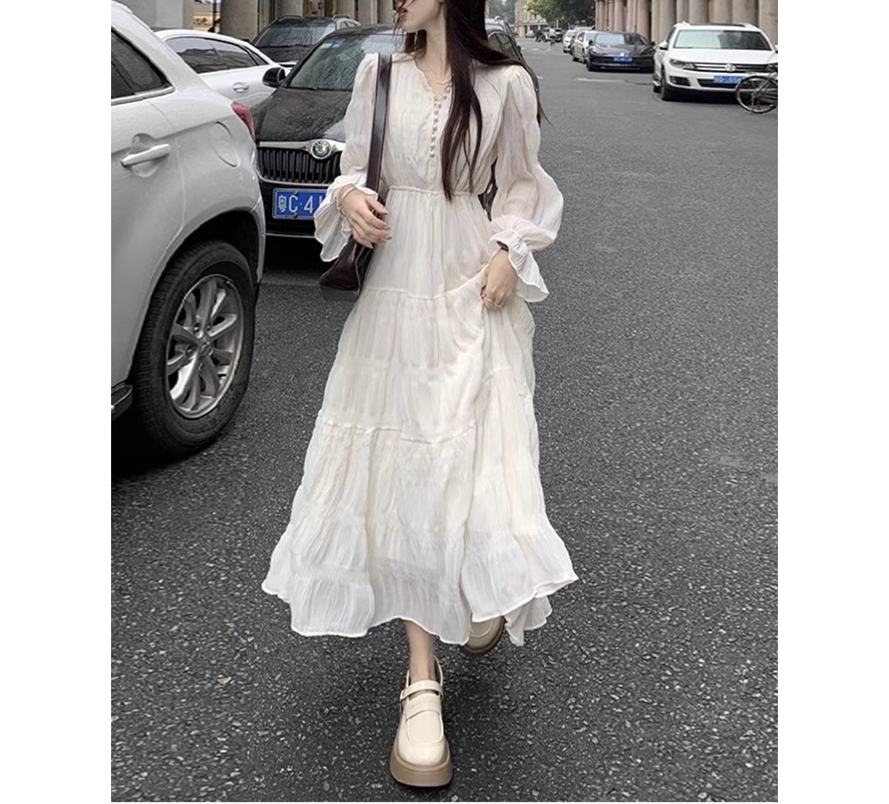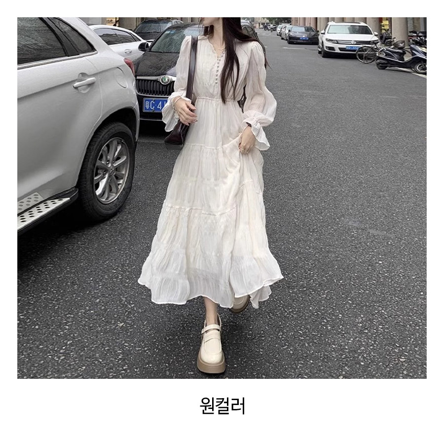 프렌치 여리핏 티어드 롱 원피스